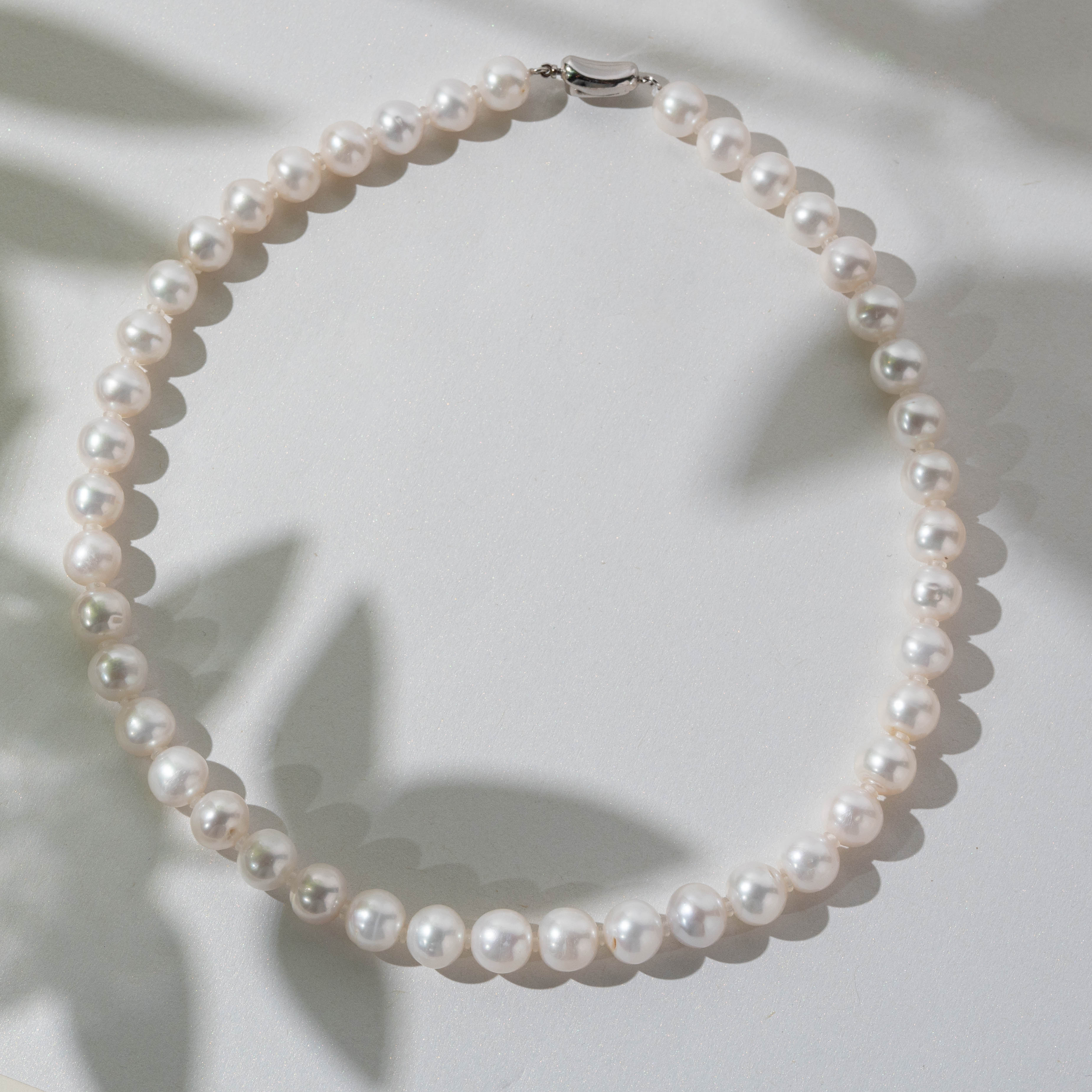 9-10mm Natural freshwater pearl necklace white near round good luster pearl strands