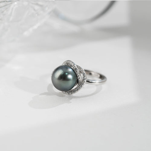 9-10mm Tahitian pearl rings S925 Sterling Silver Zircon
